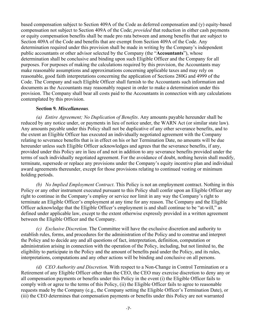 EXECUTIVE SEVERANCE, CHANGE IN CONTROL AND RETIREMENT POLICY