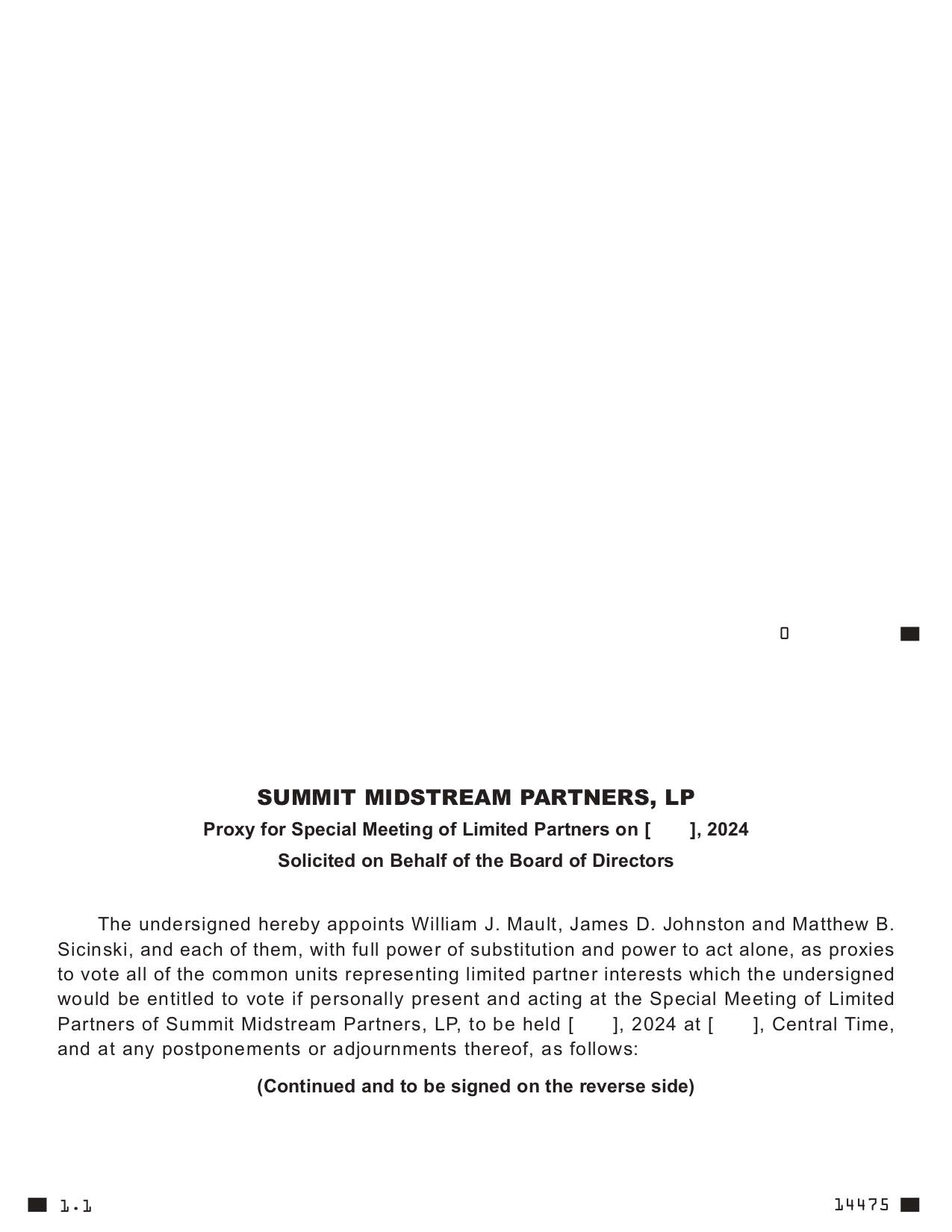 FORM OF PROXY CARD FOR SUMMIT MIDSTREAM PARTNERS, LP