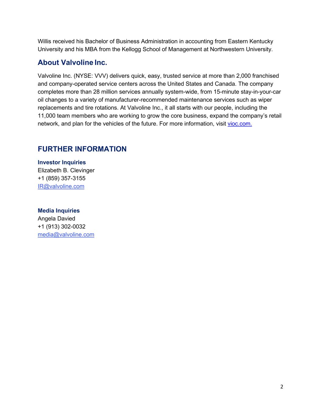 Valvoline Inc